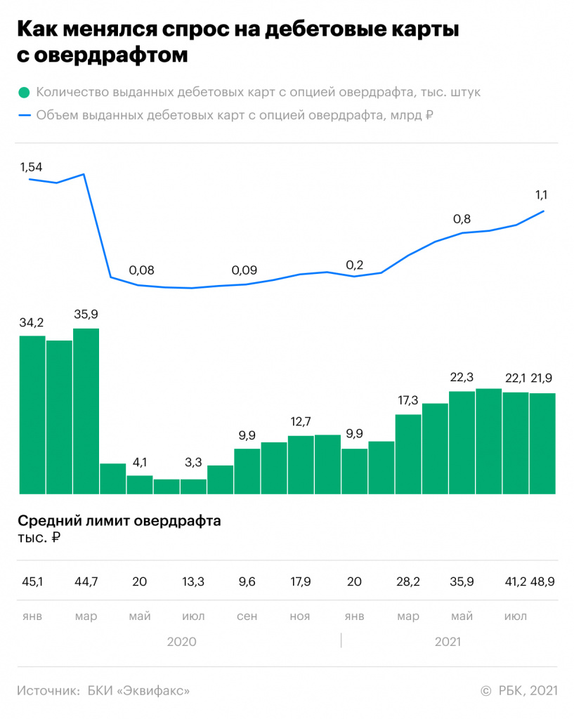 «Рынок овердрафтных карт фактически восстанавливается после сокращения в прошлом году — по мере улучшения операционной среды банки могли несколько ослабить риск-политики в отношении данного продукта», — допускает Доронкин.
