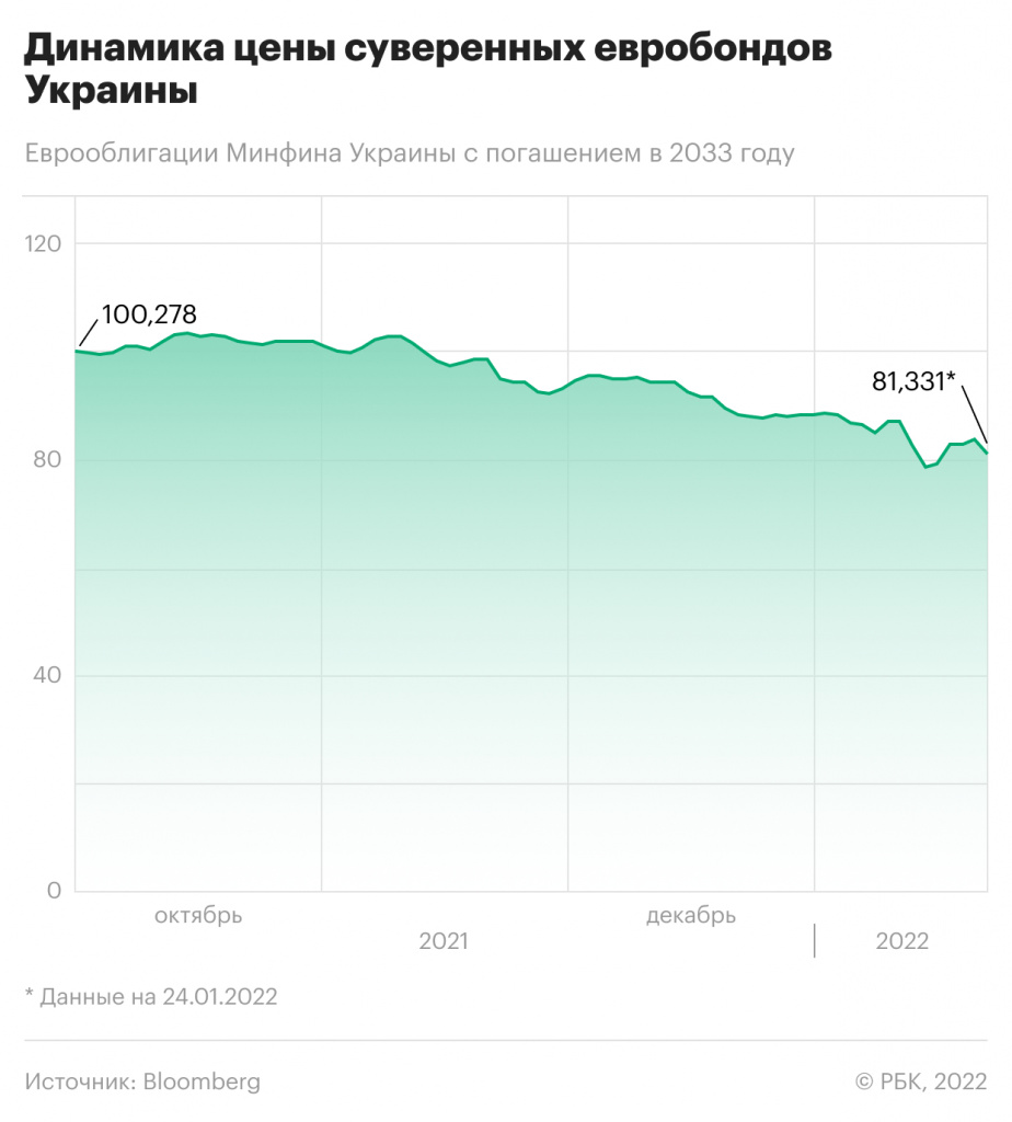 Реакция украинских гривны, биржи и бондов на угрозу войны. Инфографика