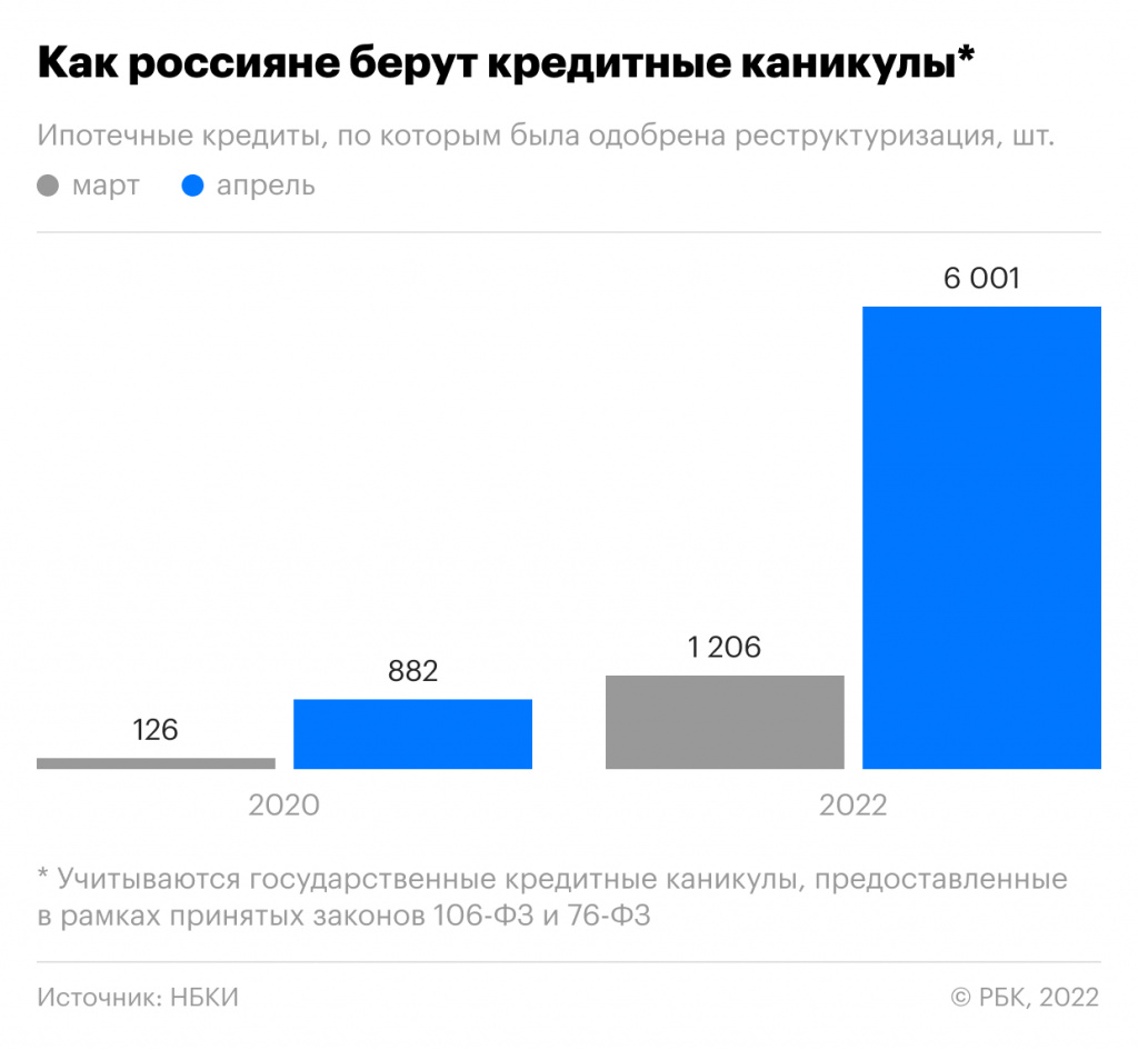 На фоне российской военной операции на Украине и западных санкций власти в марте перезапустили механизм кредитных каникул, который до этого применялся во время пандемии коронавируса. Он позволяет получить отсрочку платежей по кредитам на срок до шести месяцев при соблюдении определенных условий: доход заемщика должен снизиться более чем на 30% по сравнению со среднемесячным заработком в 2021 году и месяцем, предшествующим подаче заявки, а факт ухудшения финансового положения должен быть подтвержден документами.