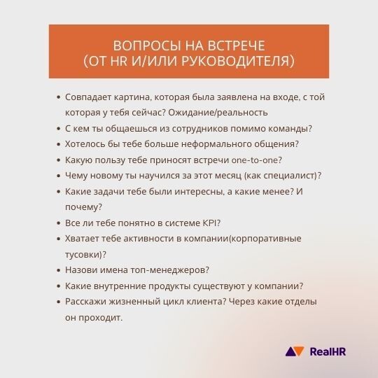 После испытательного срока мы не бросаем сотрудника, но сокращаем количество встреч. Одного раза в квартал будет достаточно, чтобы понимать, как идут дела.