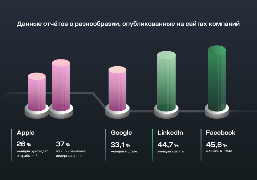 Для борьбы с гендерным дисбалансом на Западе для публичных компаний законодательно введены квоты на сотрудников-представителей меньшинств. Компания должна не просто не отклонять таких кандидатов, но обязана обеспечить их присутствие. Кремниевая долина уже несколько лет борется с «братской культурой», когда мужчины доминируют не только по численности, но также пользуются большими полномочиями и возможностями на работе. До сих пор свыше половины сотрудников в штате IT-компаний — мужчины.