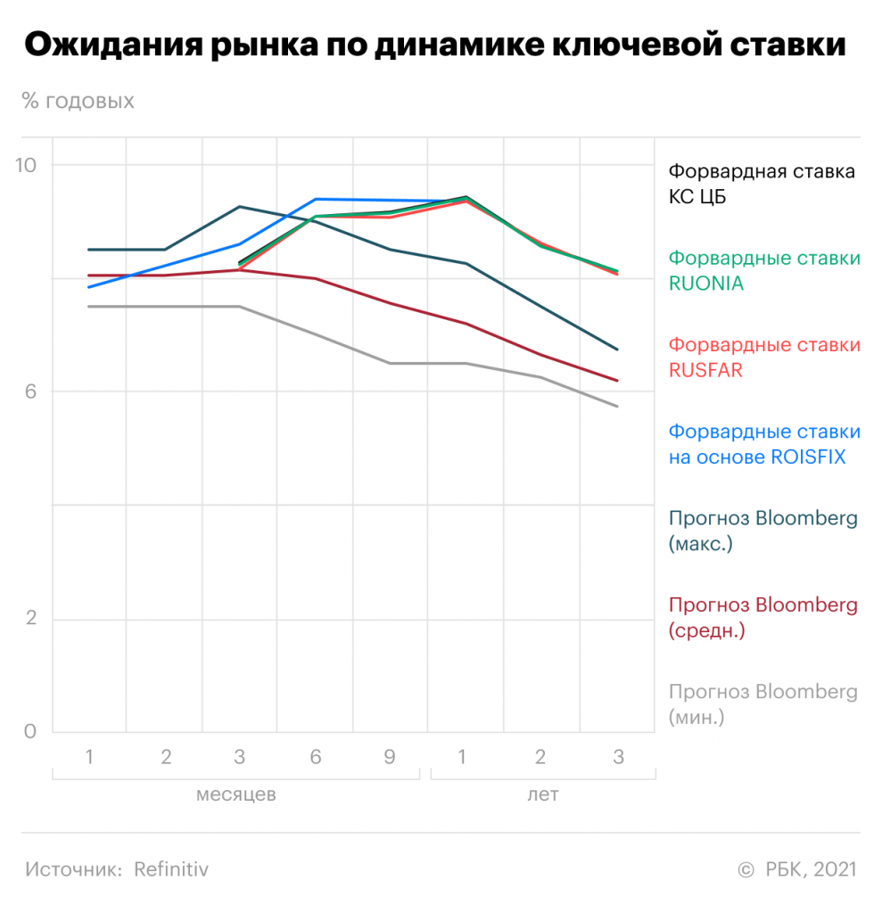 Это подтверждается и словами главы ЦБ, заявившей: «Сохранение ставки на текущем уровне (7,5%) маловероятно, так как сейчас темпы инфляции соответствуют верхней границе прогнозов регулятора. Уровень ключевой ставки до конца года, скорее всего, будет повышен, максимальный шаг, который рассматривает Центробанк, — 1%».