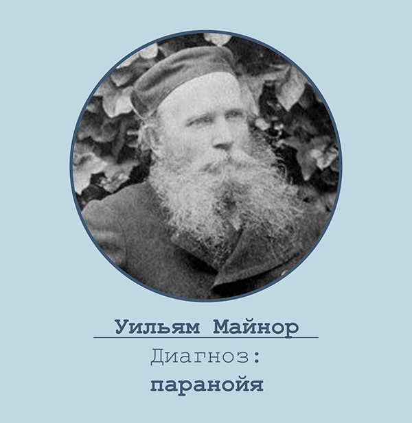 Уильям Майнор (1834 года рождения) — американский военный хирург и один из крупнейших собирателей цитат для Оксфордского словаря английского языка. Преследуемый паранойей, он смертельно ранил человека по имени Джордж Мерретт. Майнор считал, что тот ворвался к нему в комнату. Каждую ночь он видел человека, который подходит к его кровати. Мужчина даже обращался в полицию, где заявлял о ночных вторжениях. Детективы вежливо кивали и что-то записывали. Ничего не менялось, потому Майнор решил сам решить эту проблему. 17 февраля 1872 года он в очередной раз проснулся и увидел мужскую фигуру. Ему показалось, что неизвестный выбежал на улицу. Майнор последовал за ним. Там он встретил Мерретта, который шел на работу, и выстрелил в него. Военного хирурга признали невменяемым и заключили в клинику для душевнобольных преступников. В лечебницах Майнор провел всю последующую жизнь. Умер в Приюте для безумных пожилых людей в Хартфорде, штат Коннектикут, в 1920 году.