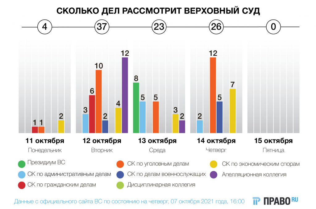 В коллегии по делам военнослужащих рассмотрят 7 дел, в дисциплинарной коллегии — ни одного.
