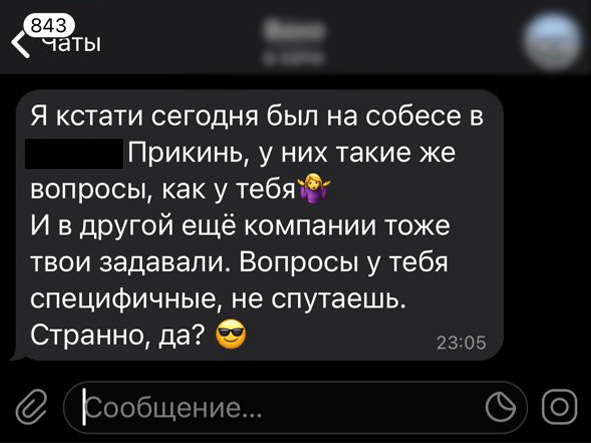 Однажды мне в Телеграм пришло сообщение от кандидата, которого мы собеседовали пару месяцев назад.