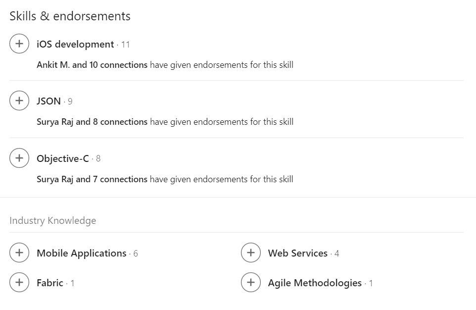 Для того, чтобы ваши коллеги нажимали на плюсик напротив каждого вашего скила. Этим действием они подтверждают, что данный навык у вас имеется и вы в этом деле настоящие профи.