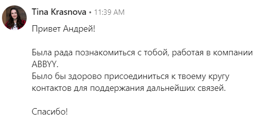 Незнакомым людям, нужно представляться и объяснять свою мотивацию. Почему вы хотите добавиться в круг их профессиональных контактов?