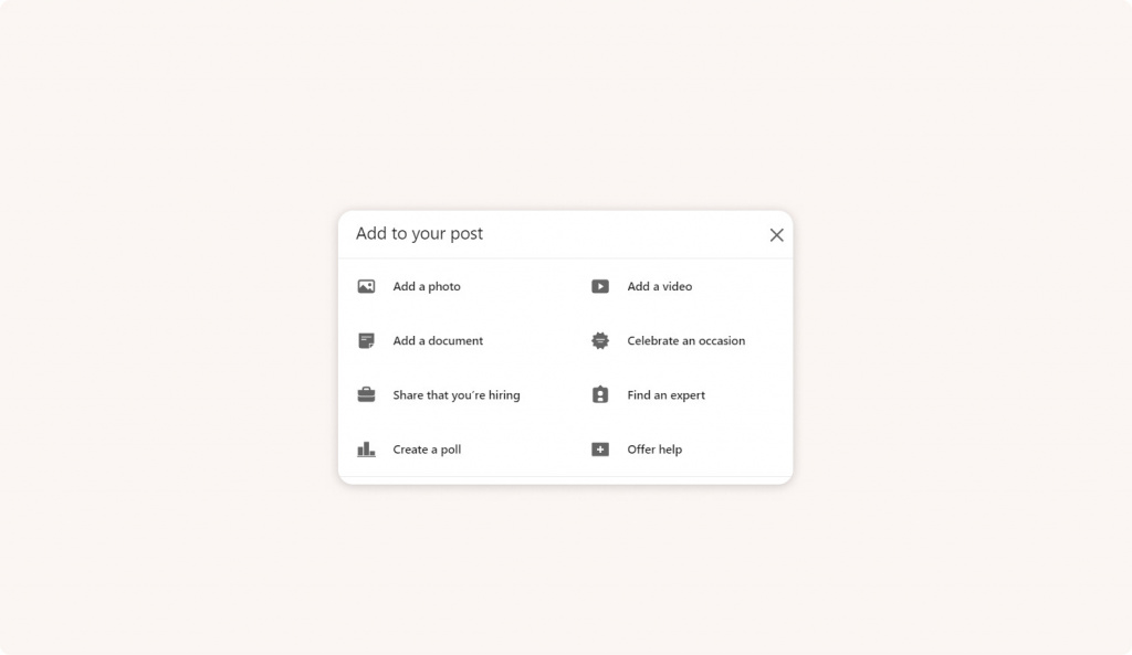 Используйте все доступные форматы публикаций, которые предлагает вам LinkedIn, чтобы разнообразить ваш контент, а также улучшить его выдачу в общей ленте новостей.