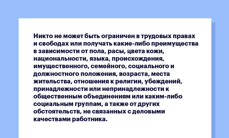В вакансии нельзя указывать требования, которые дискриминируют работника. Это регулируется статьей 3 Трудового кодекса: