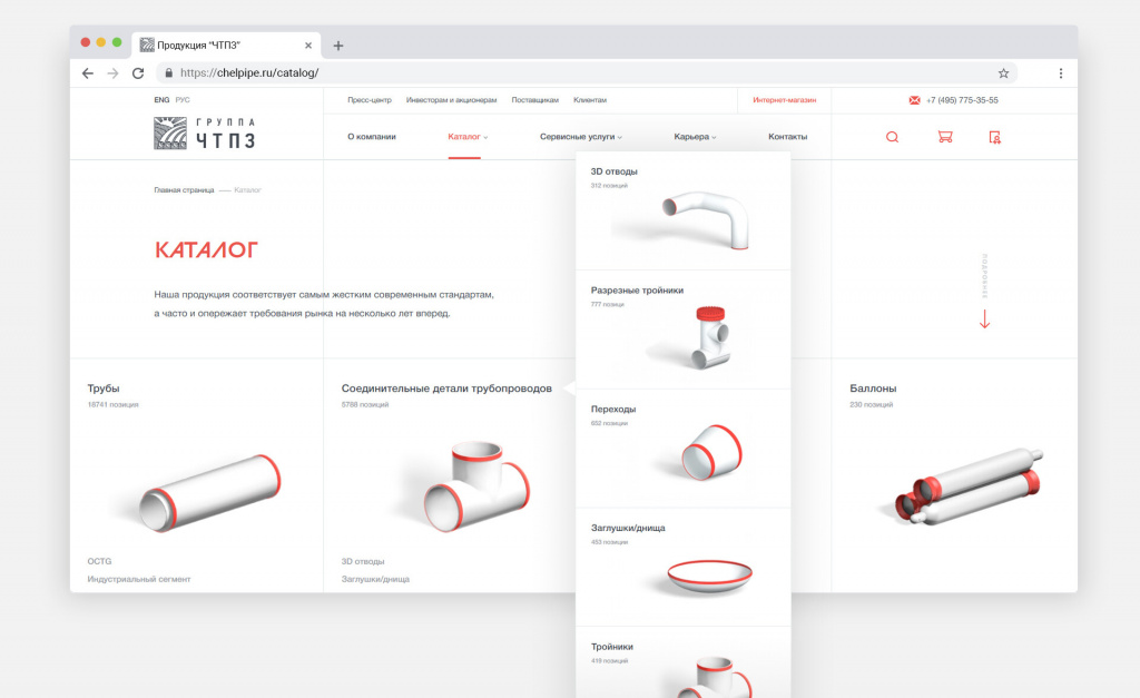 В рамках концепции «белой металлургии» ЧТПЗ создала новый брендбук. Светлый, минималистичный дизайн сайта — продолжение этой философии, и все наши улучшения UX были пронизаны ее идеями.