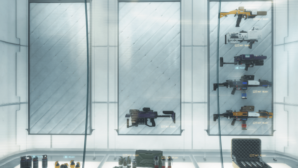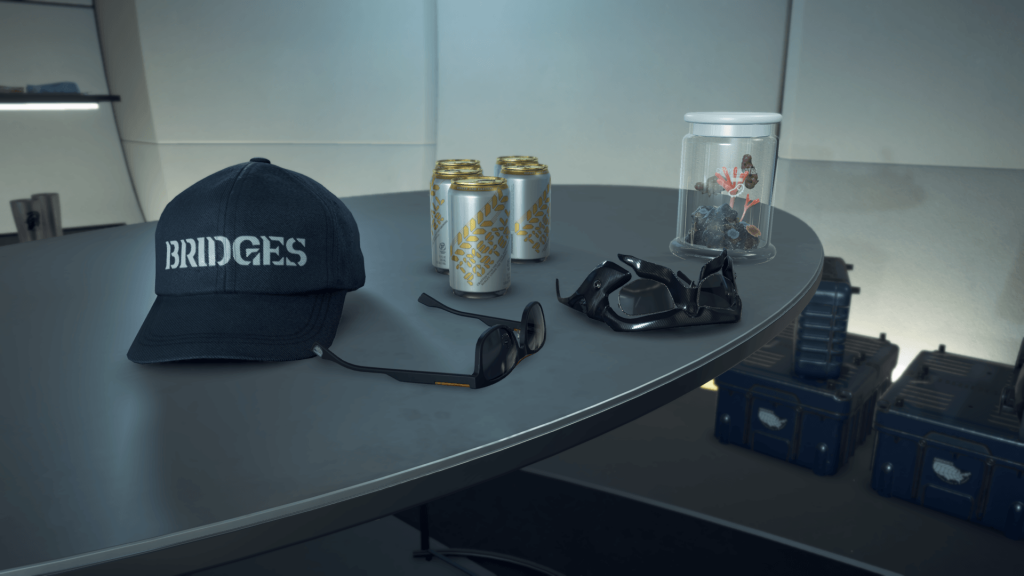 На фото выше есть много свободного места. Это важно: так игрок видит, что упускает часть содержания игры; он мотивирован зарабатывать звёздочки и в очередной раз грузить на себя контейнеры. Этот арсенал — что-то вроде «зала славы», который есть у многих компаний: место, где торжественно представлены победы и зафиксированы значимые события (сертификаты, кубки, фото с корпоративов). Следуя логике Death Stranding, я бы предложил покупать и подписывать рамки для наград, которые команда ещё не получила, но к которым стремится.