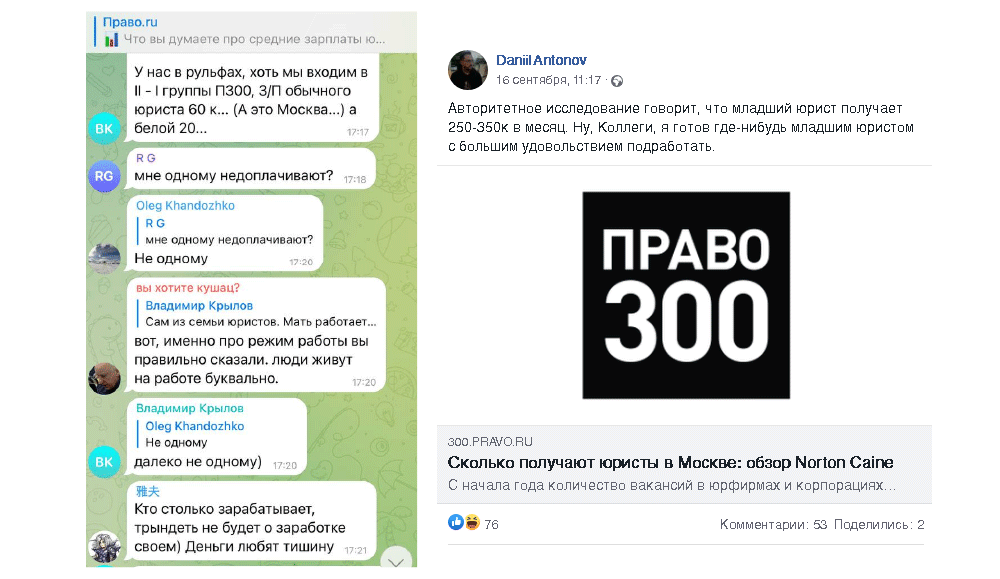 «Коллеги из регионов прямо спрашивали меня, правда ли, что младшие юристы в Москве зарабатывают по 200 000 руб. в месяц, и как при таких условиях удержать талантливые кадры в своих городах», – делится партнер Алексей Артюх. Обсуждалось это исследование, по его словам, и в «московских гостиных». «Типичной реакцией здесь можно назвать недоумение, ведь данные обзора не совпадали с нашим опытом и знаниями о том самом рынке зарплат», – признается юрист.