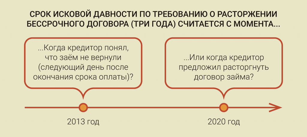 А в 2020 году «Арехелд» подал новый иск – о расторжении договора займа (дело № А40-199994/2020). Как пояснил истец, ранее в 2020-м он направил предложение его разорвать, не получив ответа, обратился в суд. «Имидж Инвест» возражал против исковых требований и заявил о пропуске срока исковой давности. Но судья АСГМ Елена Давледьянова решила, что договор не исполнен заемщиком и является действующим. А значит, срок исковой давности здесь не применяется. Вышестоящие инстанции поддержали решение в пользу «Арехелда». Они начали отсчет не с даты, когда компания узнала о неисполнении обязательства (в 2013-м), а со дня направления предложения о расторжении договора в 2020-м.